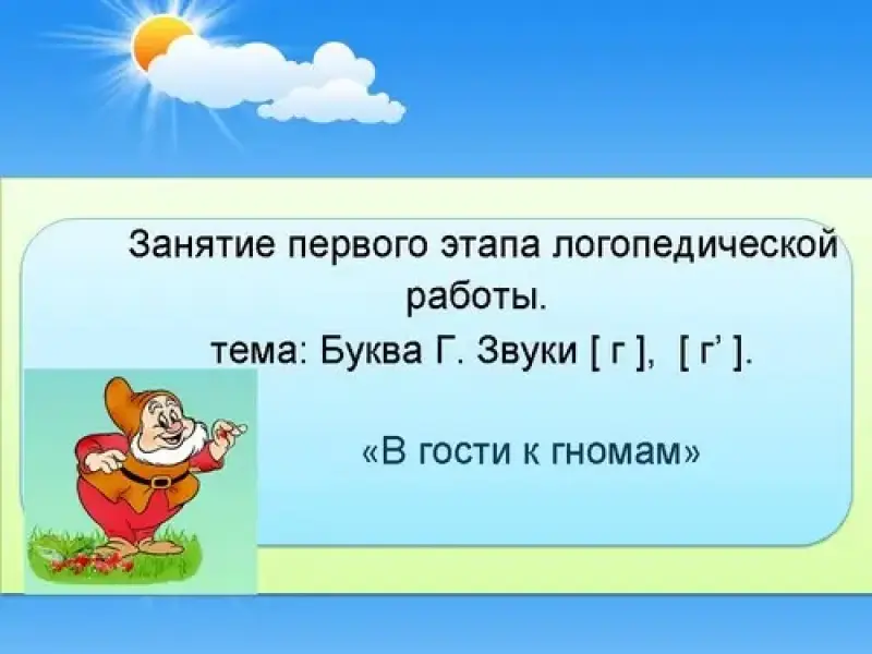 Логопед: Мы сегодня с вами отправимся в гости к гномам. Вот один из них нас встречает. Он будет нашим гидом в сказочном лесу. Кто такой гид? (объяснение учителя).