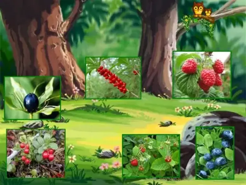 1) Учитель. Итак, мы подошли к лесной полянке. Сколько здесь разных ягод.