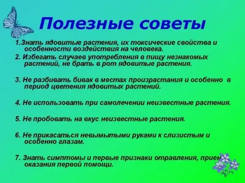 2. Избегать случаев употребления в пищу незнакомых растений, не брать в рот ядовитые растения.