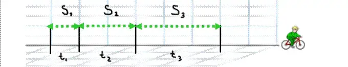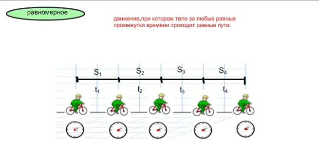 Более распространенный вид движения - прямолинейное неравномерное движение. Это движение при котором тело за равные промежутки времени проходит разные пути. Рассмотрим на примере движения велосипедиста (см. рис .7).