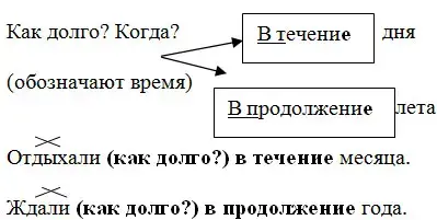Попал (куда? во что?) в течение реки. Изменения произошли (где? в чем?) в течении реки. (Обозначают место.) Ввести новых героев (куда? во что?) в продолжение романа. Мы узнаем о судьбе героя (где? в чем?) в продолжении романа. (Обозначают место.) |