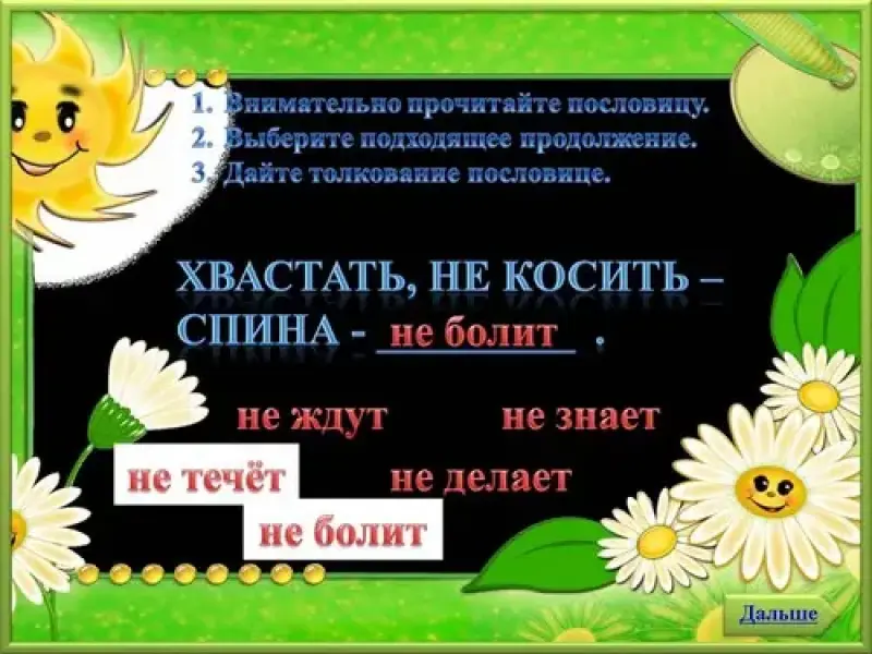 - Прочитайте, что получится. (Зачитывают пословицы).