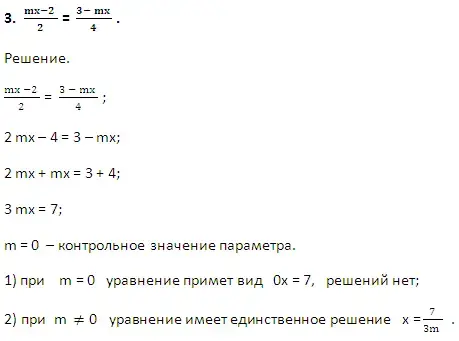 3. Укажите контрольные значения, при которых уравнение не имеет решений или решением является любое число?