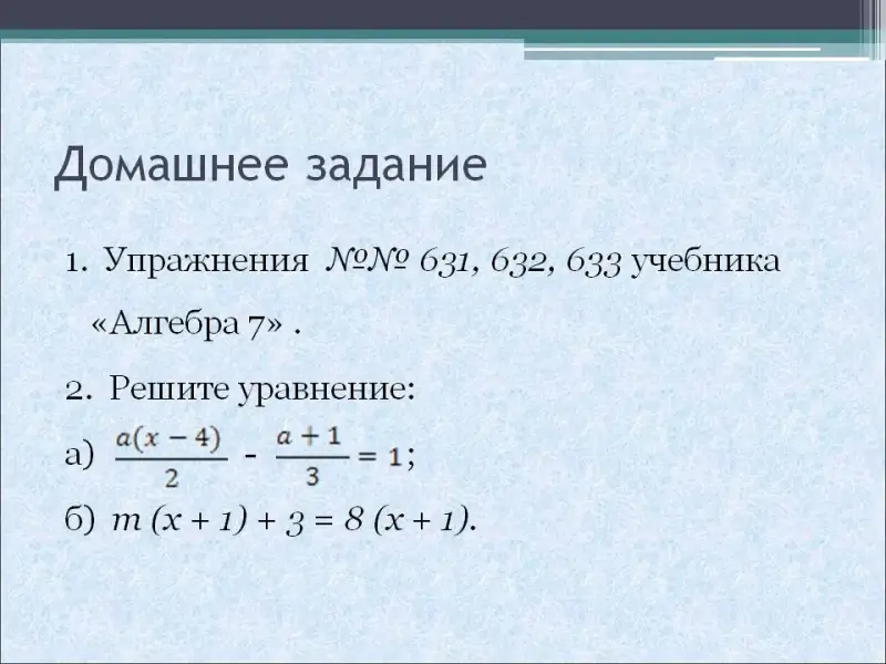 Учитель. Сегодня на уроке мы с вами будем учиться решать линейные уравнения с параметрами.