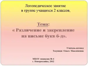Логопедическое занятие по теме "Различие и закрепление на письме букв "б-д""