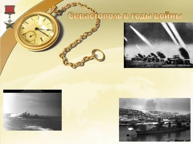 Учитель. В ходе Великой Отечественной войны ключевой оборонительной позицией являлась Сапун-гора на подступах к городу; здесь велись ожесточённые бои с немецко-фашистскими захватчиками. (муз.файл5)