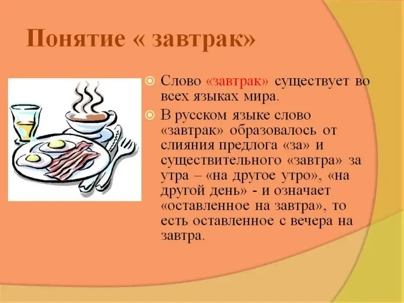 Домашнее задание: 1. Постарайтесь в выходной день приготовить завтрак для себя или всей семьи, чтобы порадовать близких (на выбор). Отзывы о завтраке принесите к следующему уроку.