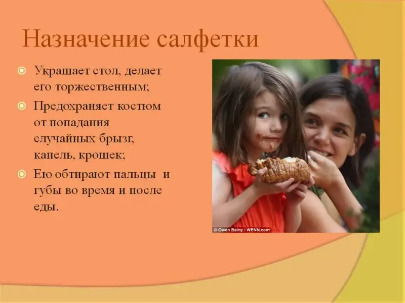 - Что называется сервировкой стола? - Как располагают приборы для завтрака на столе? - Как меняется сервировка в зависимости от меню? Предлагает задание: по схемам сложить салфетки |