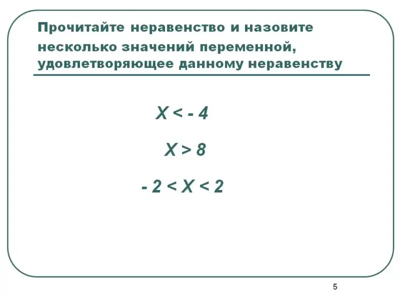 3. Прочитайте неравенство и назовите несколько значений переменной, удовлетворяющее данному неравенству: