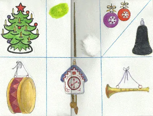 - Назовём все новогодние игрушки, которые нарисовал художник.