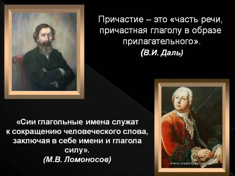 «Часть речи, причастная глаголу, в образе прилагательного». (В.И.Даль.)