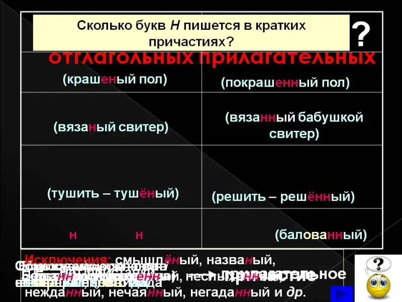 - Расскажите об образовании страдательных причастий прошедшего времени. (Слайд № 14)