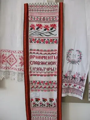Старинные предметы быта и одежды с вышивкой (демонстрация старинных изделий с вышивкой).