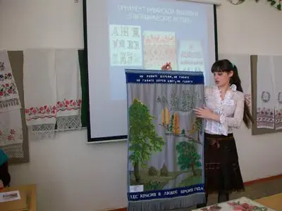 На урок были приглашены научные работники краеведческого музея города Новокубанска, которые любезно предоставили экспонаты музея и рассказали много любопытной информации. Рушники, скатерти, салфетки, женская и мужская рубахи заинтересовали не только детей, но и взрослых, приглашённых на урок.