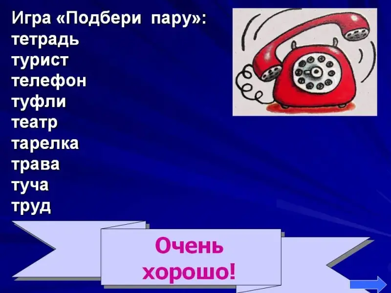 4. Игра «Подбери пару». К слову подобрать подходящее слово так, чтобы оно начиналось со звука т. (Тетрадь, турист, телефон, туфли, театр, тарелка, трава, туча, труд).