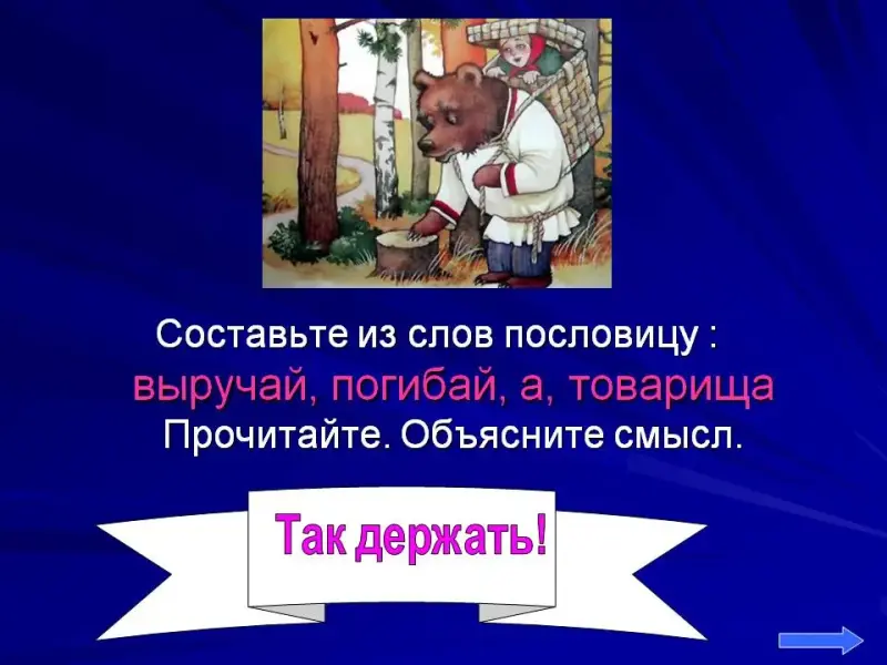5. Составьте из слов пословицу (выручай, погибай, а, товарища). Прочитайте. Объясните смысл.