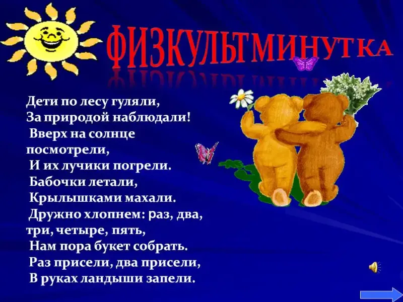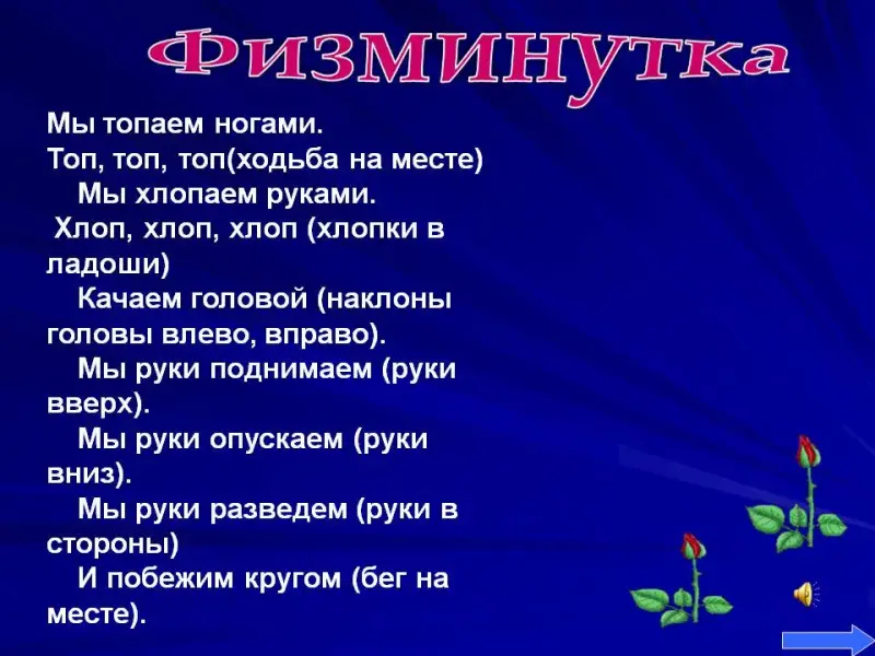 3 блок - физминутки (см. на слайдах).