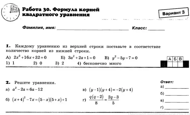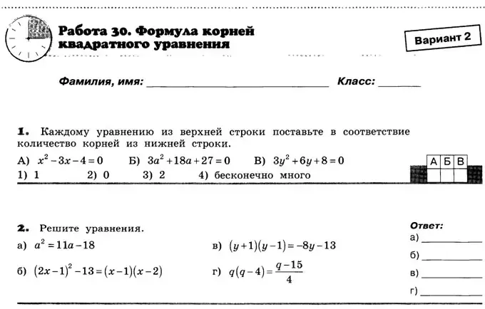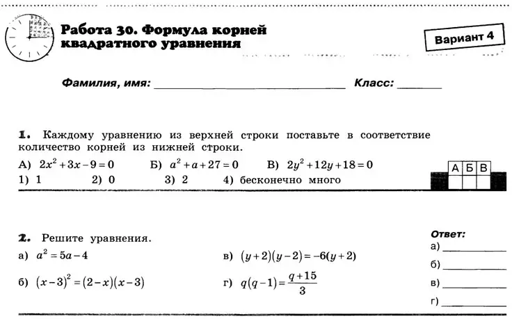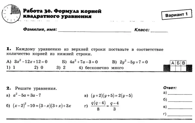 г) Далее учащимся предлагается самостоятельно решить уравнение по известной им формуле: