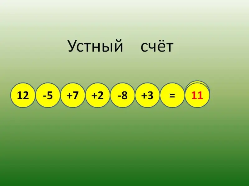 - развитие волевой саморегуляции (во время устного счёта, чтобы правильно ответить, нужно следить за ответами одноклассников и внимательно смотреть на доску);
