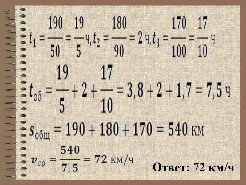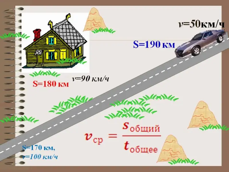 9. Если в задаче нужно найти среднюю скорость движения, то ищется общий путь, общее время и соответственно
