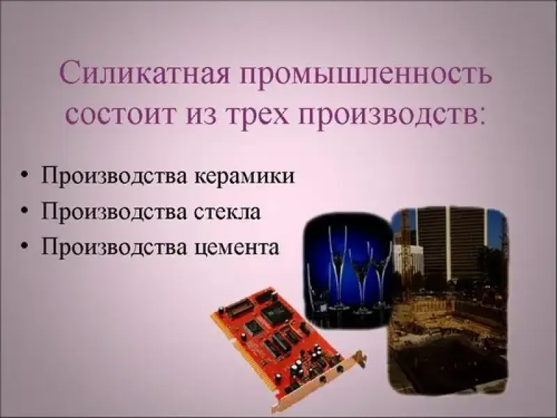 Силикатная промышленность - это производство различных строительных материалов, стекла и керамики из различных природных силикатов.