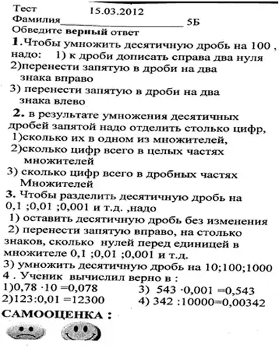 При решении задач вы применяли определенные правила действий с дробными числами, покажите знание правил, выполните тест