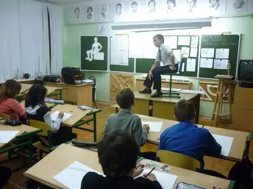 1) Учитель приглашает одного из учеников (мальчика) в качестве модели для позирования.