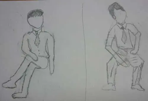 3) Учащиеся выполняют два наброска с фигуры мальчика. Во время выполнения учащимися рисунка подхожу к рабочим местам для помощи. Осуществляю контроль за правильностью ведения рисунка <рисунок 5, 6>.