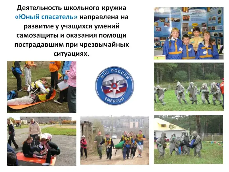 Деятельность школьного кружка «Юный спасатель» направлена на развитие у учащихся умений самозащиты и оказания помощи пострадавшим при чрезвычайных ситуациях.