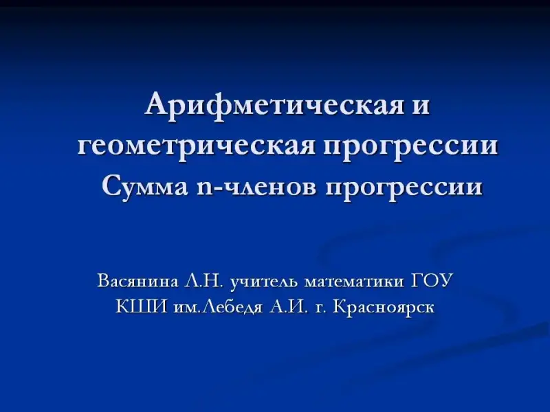Тема урока: "Сумма n членов арифметической и геометрической прогрессии". 9-й класс