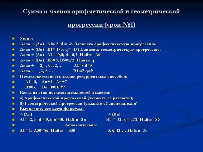 Тема: Сумма n-членов арифметической и геометрической прогрессий. Урок №1-2