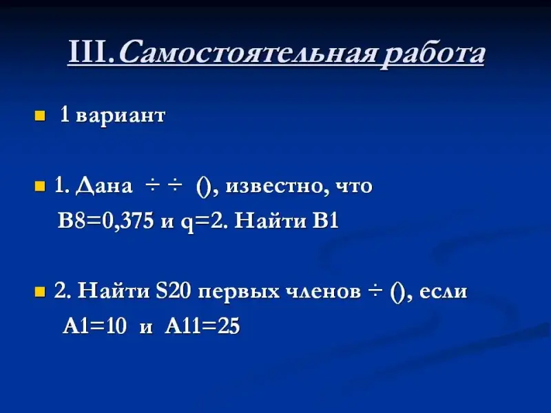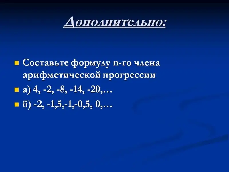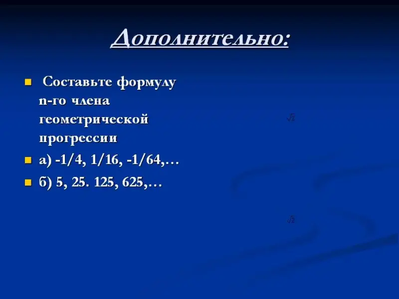 а) два ученика у доски готовят доказательства вывода формул n-го члена арифметической и геометрической прогрессии соответственно;
