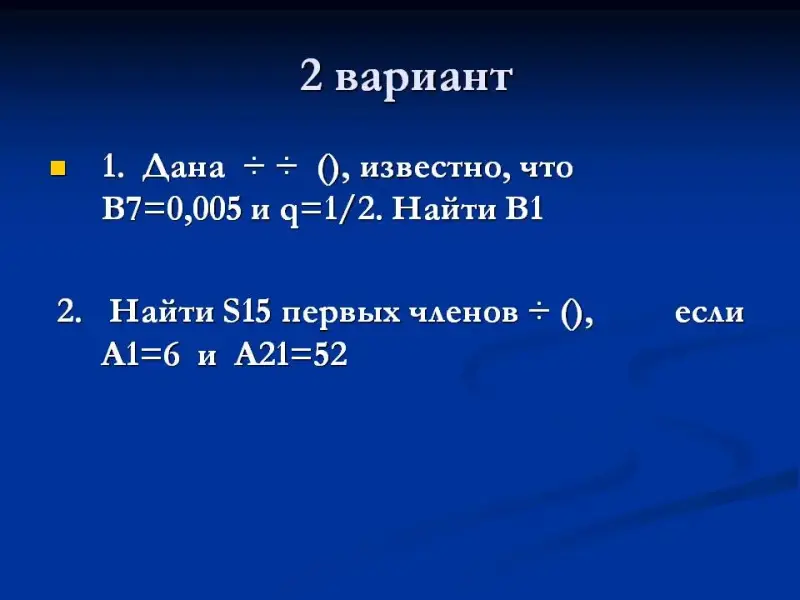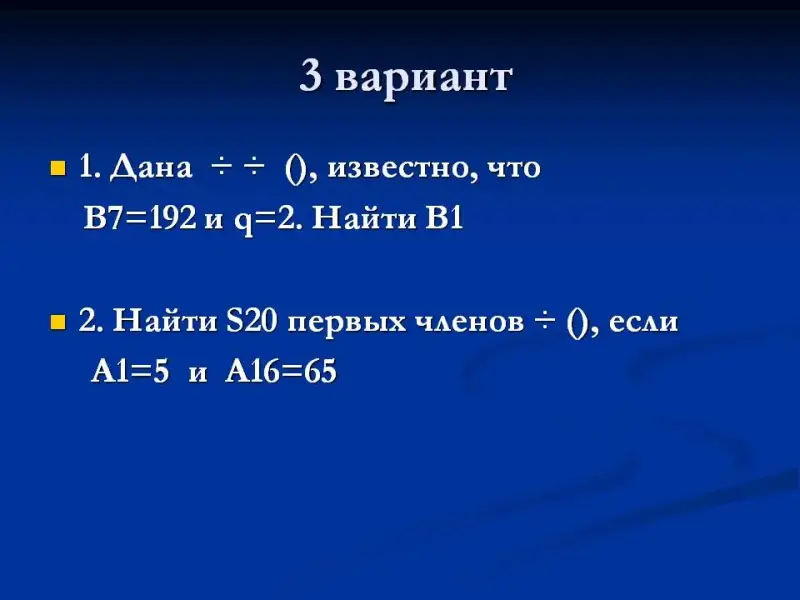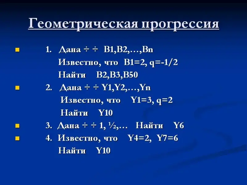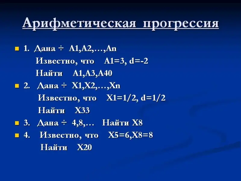 Показать применение формул n-го члена арифметической и геометрической прогрессии при решении четырех типов задач - такова цель данного задания.