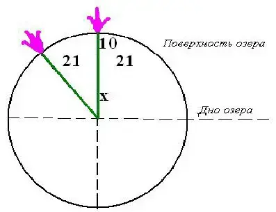 А решается эта задача на основе свойства пересекающихся хорд. Посмотрите на рисунок, и станет ясно, как находится глубина озера.