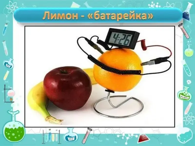Наверняка многим из вас известен фокус с лимоном-"батарейкой": (демонстрация) в лимон вставляются два провода и получается простейший источник электрического тока. С научной точки зрения такой лимон представляет собой гальванический элемент.