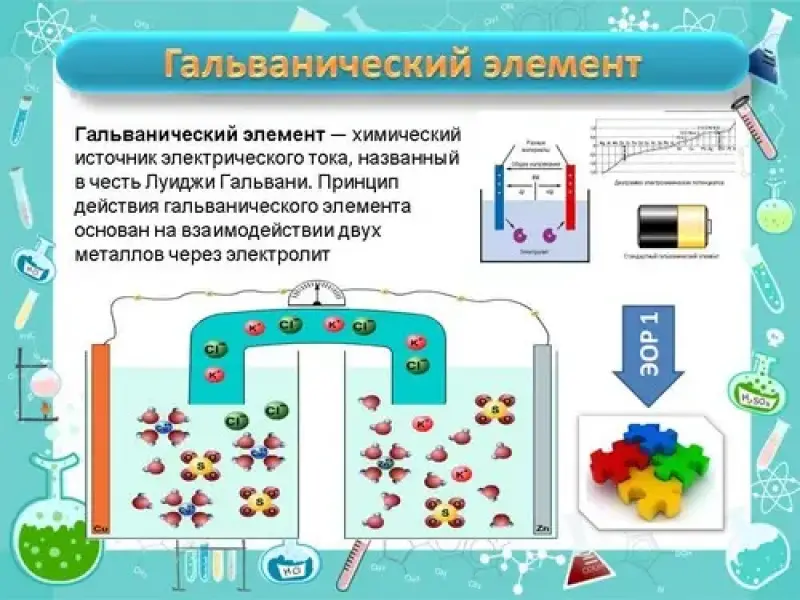 Откуда берется энергия для протекания электрического тока? Какой процесс протекает в гальваническом элементе: физический или химический - обоснуйте. Какие возможные химические реакции могут протекать в такой системе при данном наборе реагентов? Запишите уравнения реакций. К какому виду реакций относятся протекающие процессы?