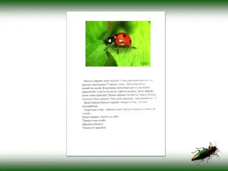 - Кто расскажет про Божью коровку?(14 слайд)