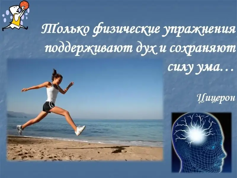 | Ведущая 1 | Наверно ты хочешь нам сказать, что все узнать и достичь интеллектуальных вершин могут только те ребята, которые с удовольствием занимаются спортом? | Слайд 11 | |||