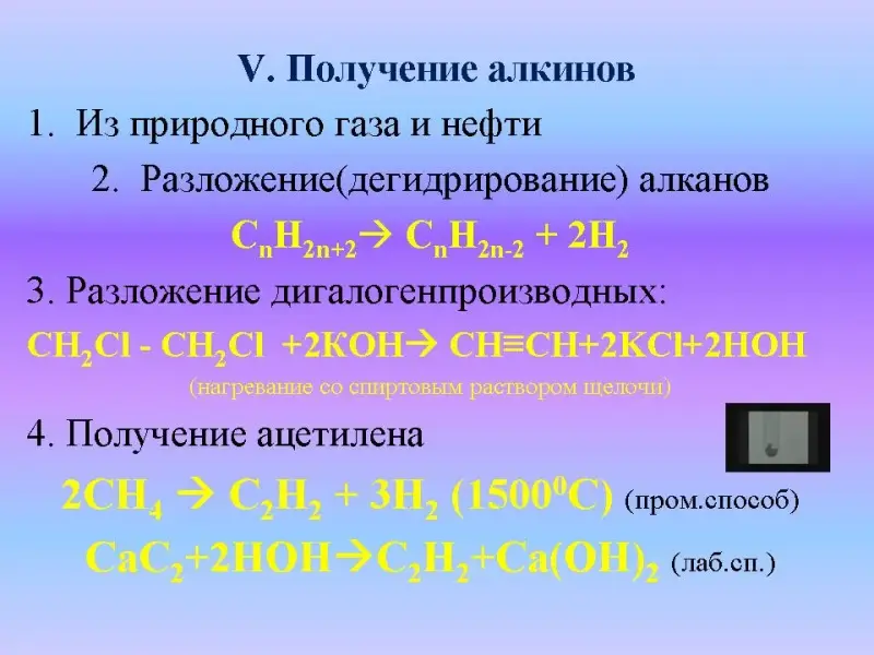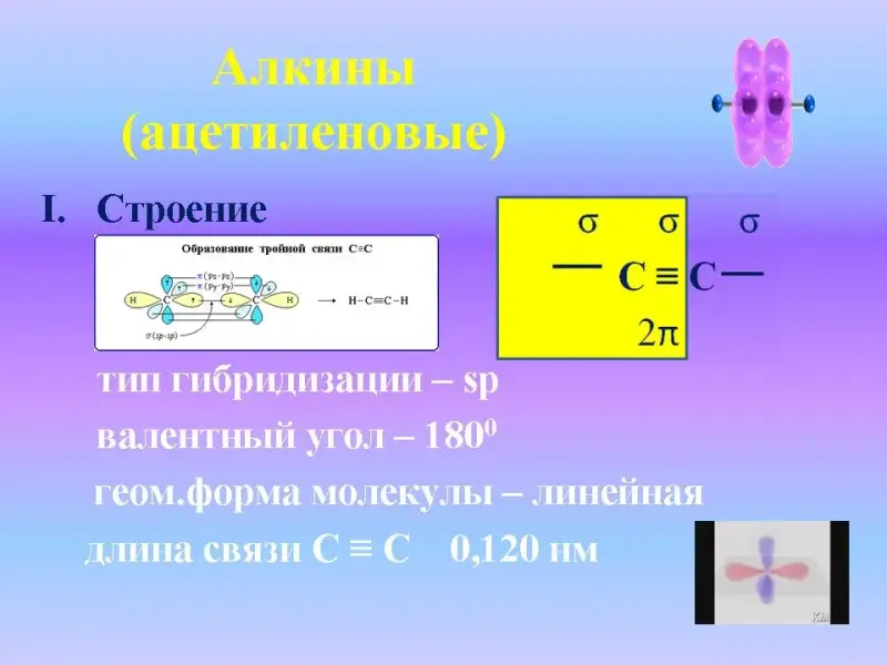 2) повторить понятие "гибридизация", её характеристики на примере алкинов;