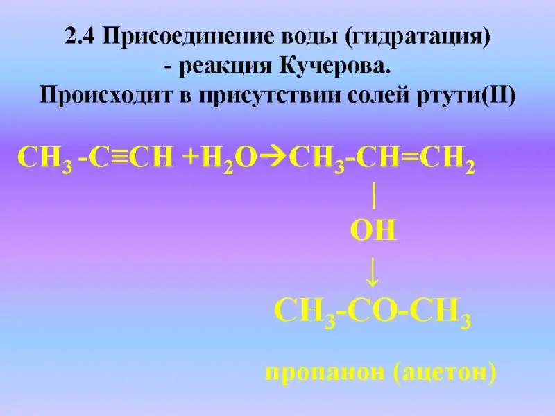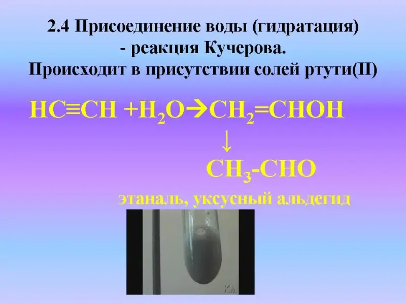 | Реакция гидратации ацетилена (объяснение учителя). Видеоролик. | Слайд 16 | |