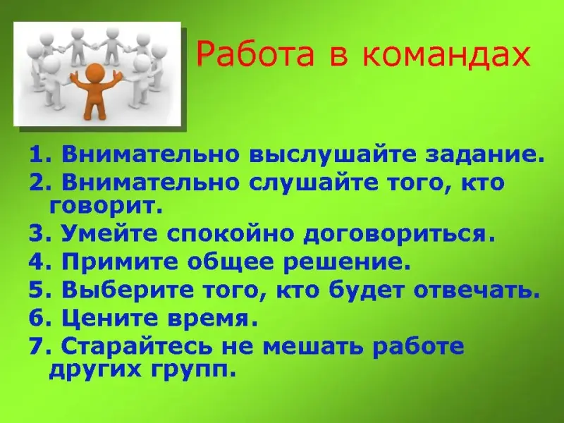- Внимательно выслушивайте задания.
