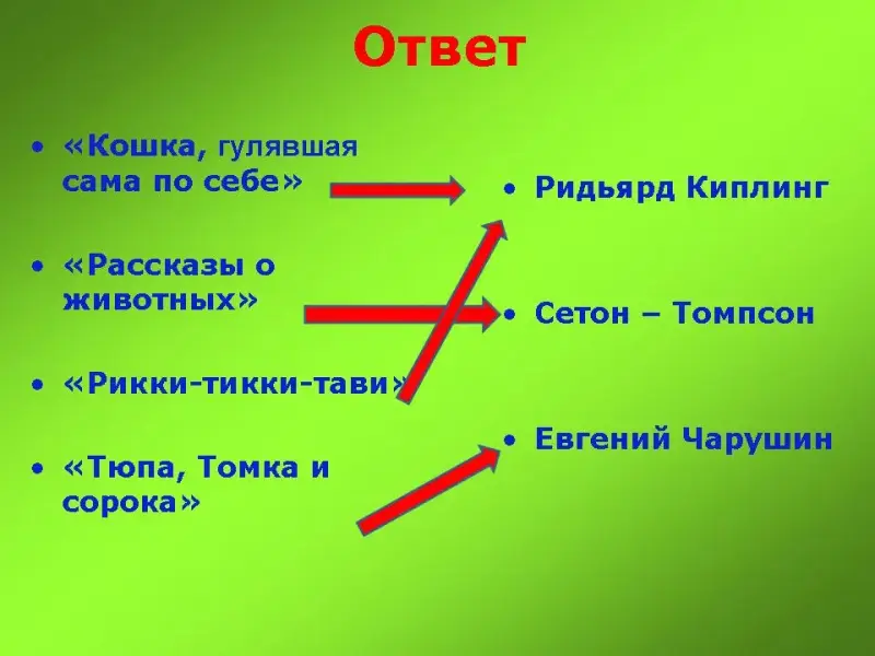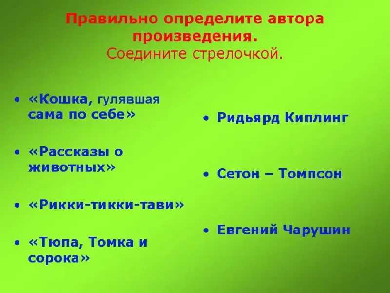 Задание: соединить стрелочками автора с названием написанного им произведением.