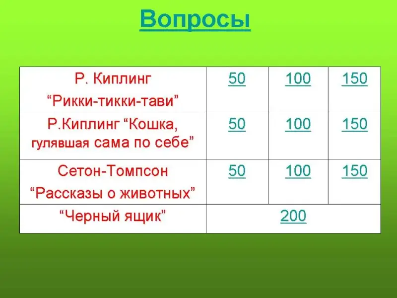 Литературная викторина "Своя игра" для учащихся 2-х классов