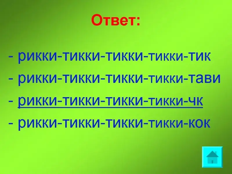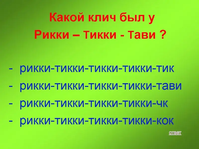 50 баллов: Какой клич был у Рикки-тикки-тави?