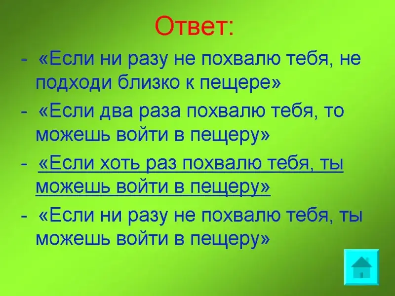 - "Если хоть раз похвалю тебя, ты можешь войти в пещеру"