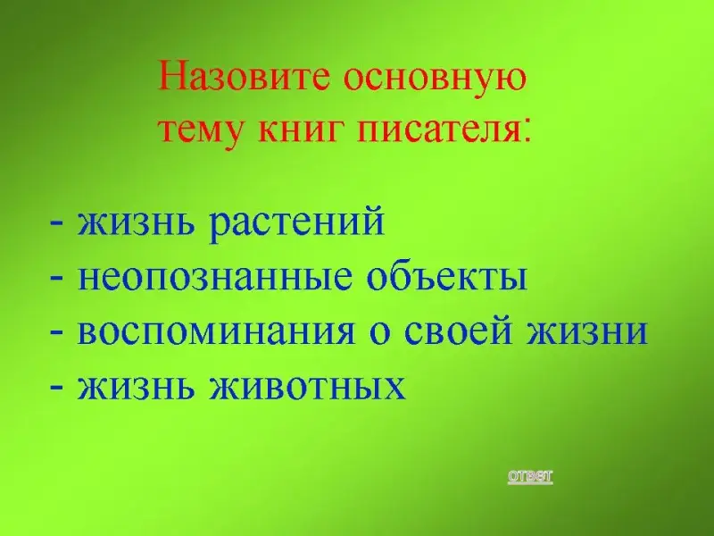 50 баллов: Назовите основную тему книг писателя: