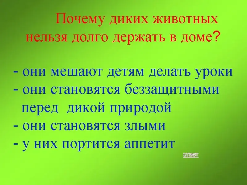 100 баллов: Почему диких животных нельзя долго держать в доме?