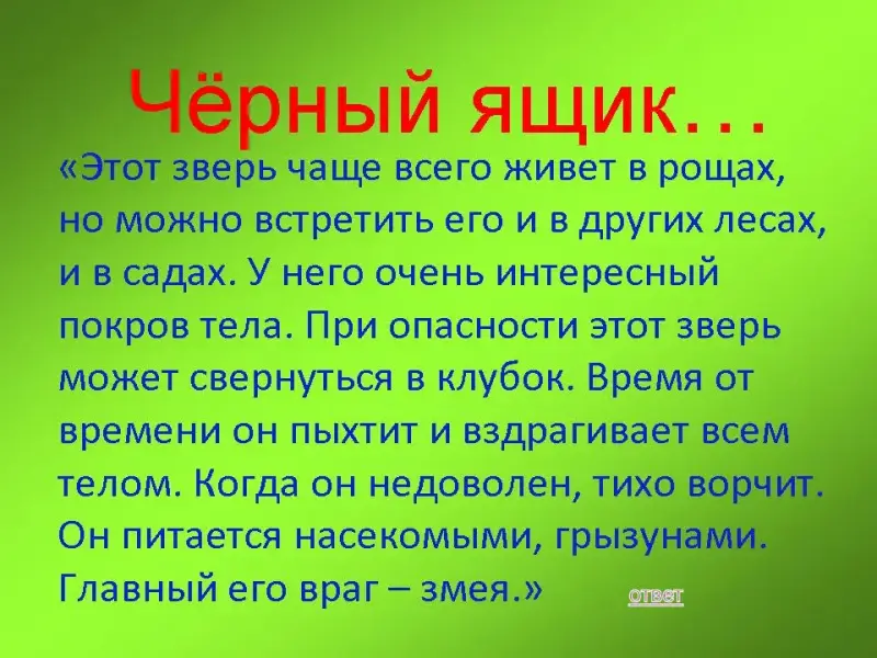 "Черный ящик": Будет дано описание животного. Необходимо угадать его и дать правильный ответ.