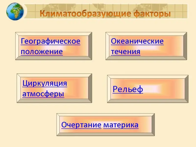 - Перечислить климатообразующие факторы.(Слайд 2)
