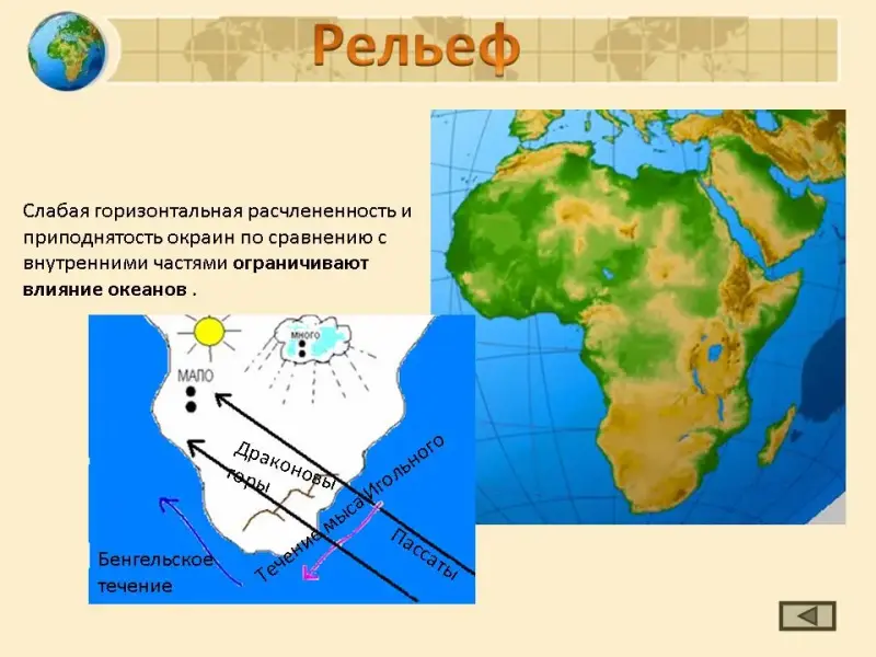 Слабая горизонтальная расчлененность и приподнятость окраин по сравнению с внутренними частями ограничивают влияние океанов.